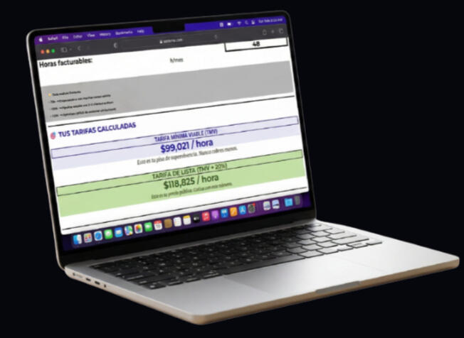3️⃣ Obtén tu tarifa mínima viableEl precio por hora que necesitas cobrar para no perder dinero. Tu piso de negociación.