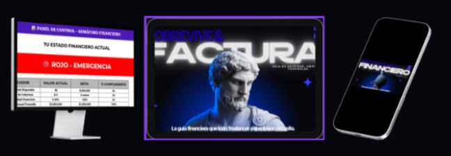 📖 E-book "Sobrevive y Factura" (6 capítulos, implementas en 5 días)📊 Calculadora de Tarifa Mínima Viable (la que ya tienes ✓)📋 Plantilla de Presupuesto con Semáforo (tu Waze financiero)📅 Calendario de Cobros y Pagos (nunca más se te escapa uno)✅ Checklist de Blindaje Financiero (diagnóstico de 30 puntos)📚 Glosario Financiero (30 términos con ejemplos de arepas)